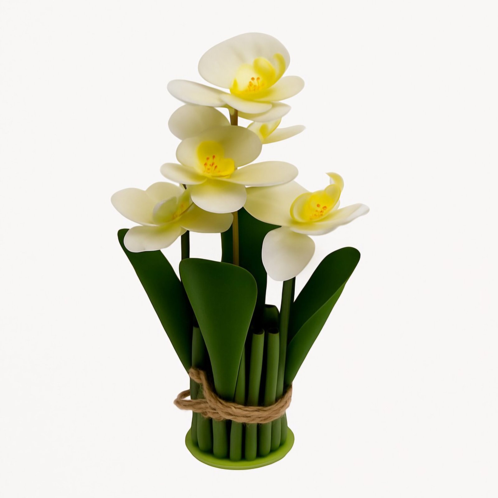 זר פרחים דקורטיבי בגווני צהוב ולבן עדינים, המשדר חמימות, רוך ואלגנטיות טבעית. העלים הירוקים והקשירה בחבל טבעי מוסיפים נופך כפרי וחמים. מושלם לעיצוב סלון, מטבח או חדר שינה, ומתאים כמתנה קלאסית לכל עונה ולכל סגנון עיצוב.