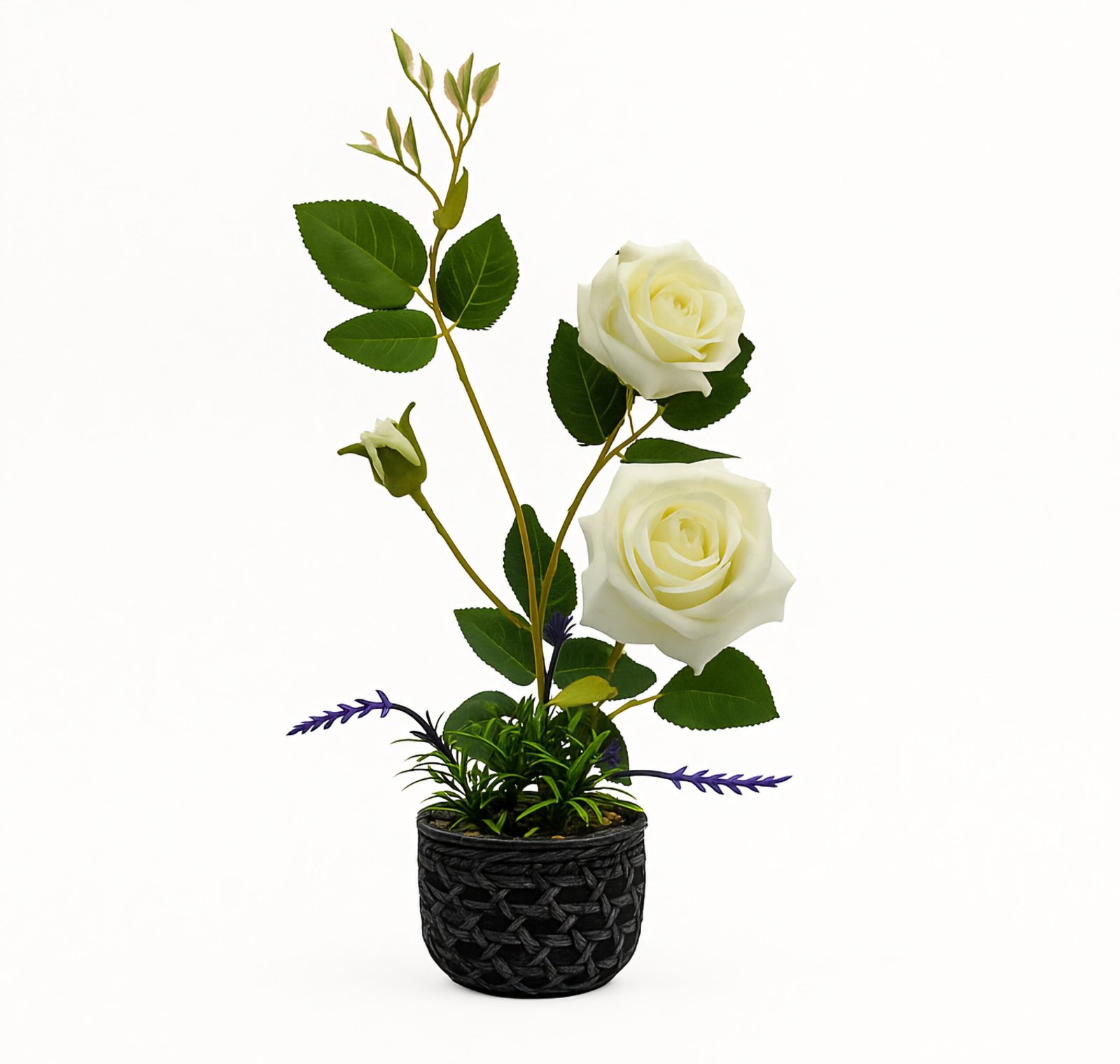 עציץ ורדים מלאכותיים בגוון לבן-טהור, המעוצב בקפידה ומעניק לחלל מראה נקי, אלגנטי ונצחי. העלים הירוקים מוסיפים נגיעת טבע מרעננת והעציץ השחור משלים את המראה הקלאסי במינון מושלם של רוך ויוקרה. ללא צורך בהשקיה או תחזוקה – היופי נשמר תמיד, ללא השקעה או טיפול. מושלם לעיצוב סלון, חדר שינה, משרד או מבואת כניסה, ומשרה בכל מקום אווירה של שלווה, ניקיון ואור טבעי.