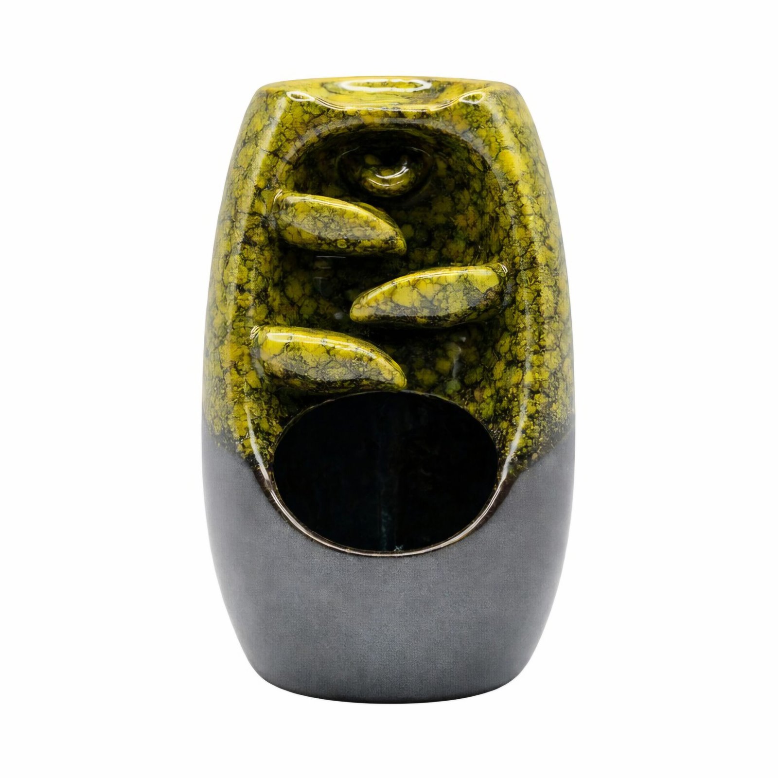 מפל עשן דקורטיבי מקרמיקה בגוון צהוב־זהוב עמוק עם טקסטורה עדינה, בעיצוב מדורג היוצר אפקט מרהיב של עשן הזורם כלפי מטה כזרימת מים שקטה. השילוב בין הצבע החמים לבסיס האפור מעניק תחושת עומק, איזון וחיבור לאדמה, ומשתלב בהרמוניה בעיצוב רגוע ועל־זמני. מתאים לקטורת מסוג Backflow, ואידיאלי למדיטציה, יוגה, חלל טיפולי או כתוספת אלגנטית ומרגיעה לעיצוב הבית.