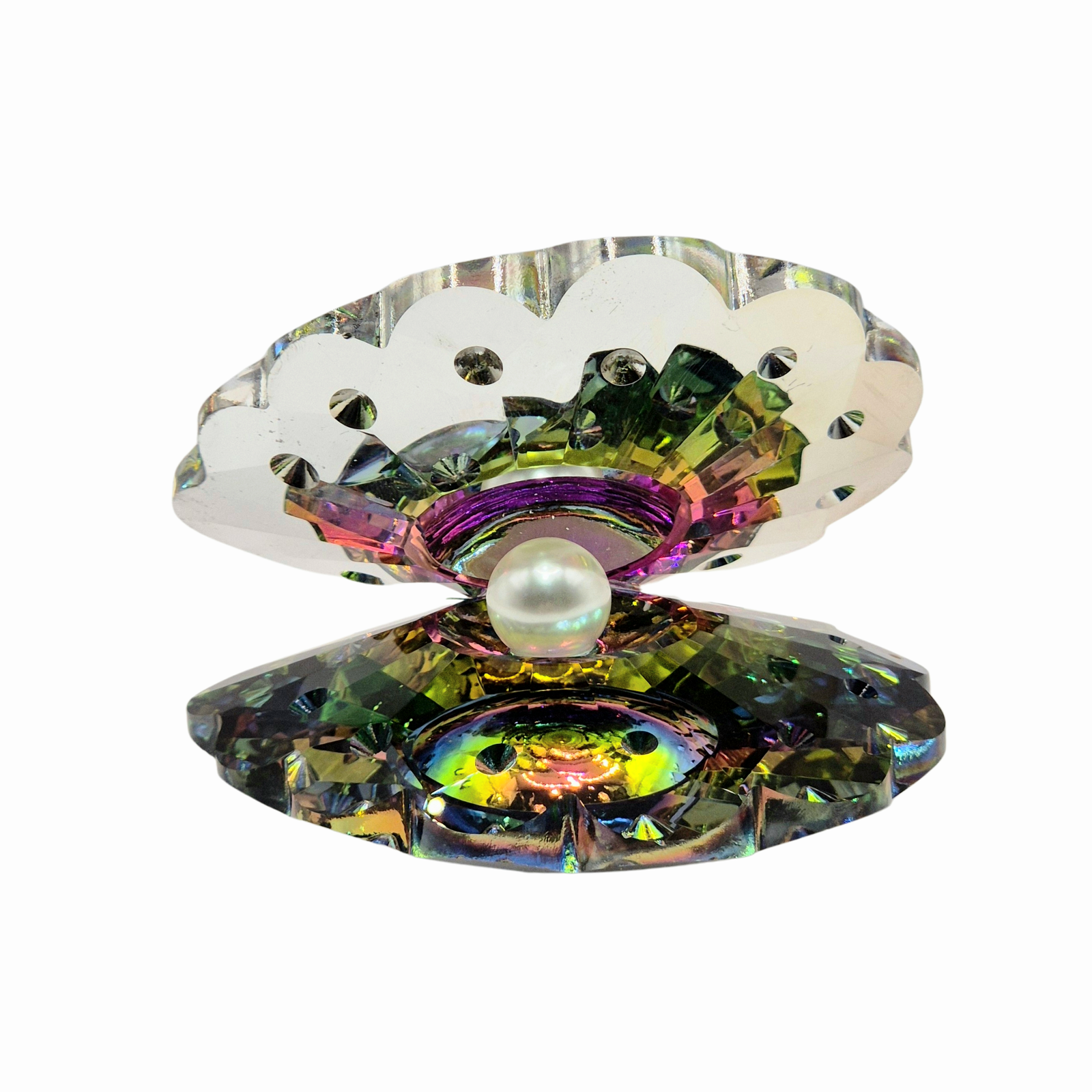 פריט דקורטיבי יוקרתי בצורת צדפה פתוחה, עשוי קריסטל רב-פנים בגימור צבעוני זוהר, ובמרכזו פנינה אלגנטית המעניקה נוכחות ייחודית ומלאת קסם. העיצוב משלב השראה ימית עם ברק עשיר והחזרי אור מרהיבים, ומתאים כאלמנט נוי בפני עצמו או להצגת תכשיטים קטנים. משתלב נהדר על שידה, מדף, מגש אירוח או פינת איפור, ומוסיף נגיעה יוקרתית, עדינה ומרשימה לכל חלל.
