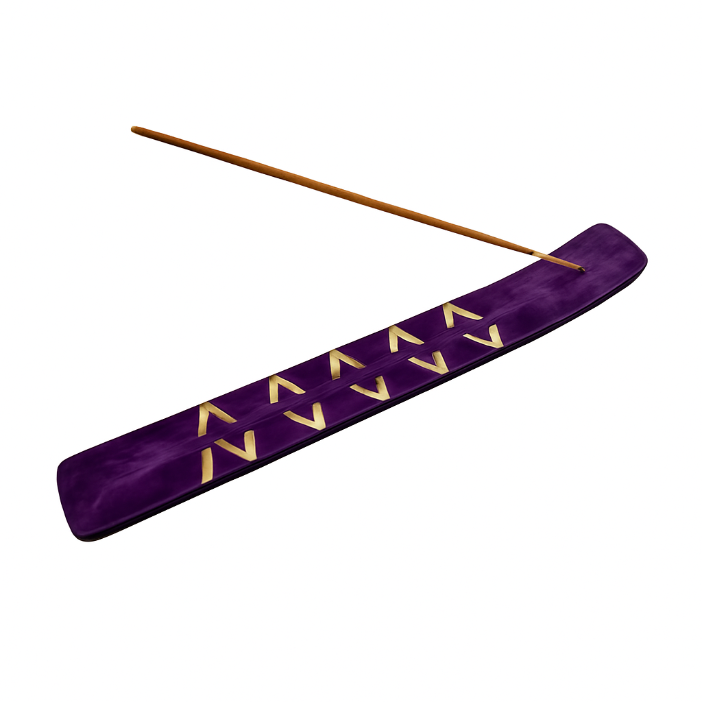 מעמד קטורת מעץ מלא בגוון סגול עמוק ומבריק, בעיטור חיתוכים עדינים בצבע טבעי. העיצוב המוארך מאפשר לקטורת להישרף בצורה בטוחה ונקייה, תוך איסוף האפר במקום אחד ושמירה על סביבת שימוש מסודרת. המעמד מוסיף טאץ’ רוחני, צבעוני ואסתטי לחלל – מושלם למדיטציה, יוגה, אווירה מרגיעה ועיצוב פינת קטורת בבית.