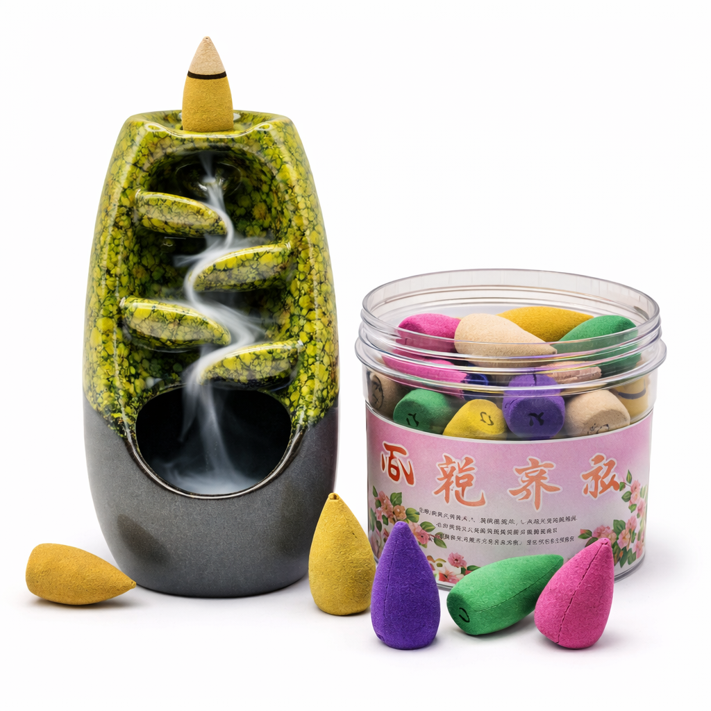 מארז מדיטטיבי הכולל מבער קטורת קרמי בעיצוב מפל עשן וחבילת קונוסי Backflow תואמים. הקונוסים מפיקים עשן הזורם כלפי מטה במראה של מפל טבעי ומרגיע, היוצר חוויה חזותית עמוקה של רוגע, איזון ונוכחות. המארז מתאים לפינת מדיטציה, יוגה, תרגול נשימה או כפריט עיצוב רוחני לבית, ומהווה מתנה מושלמת עם משמעות ושקט פנימי.