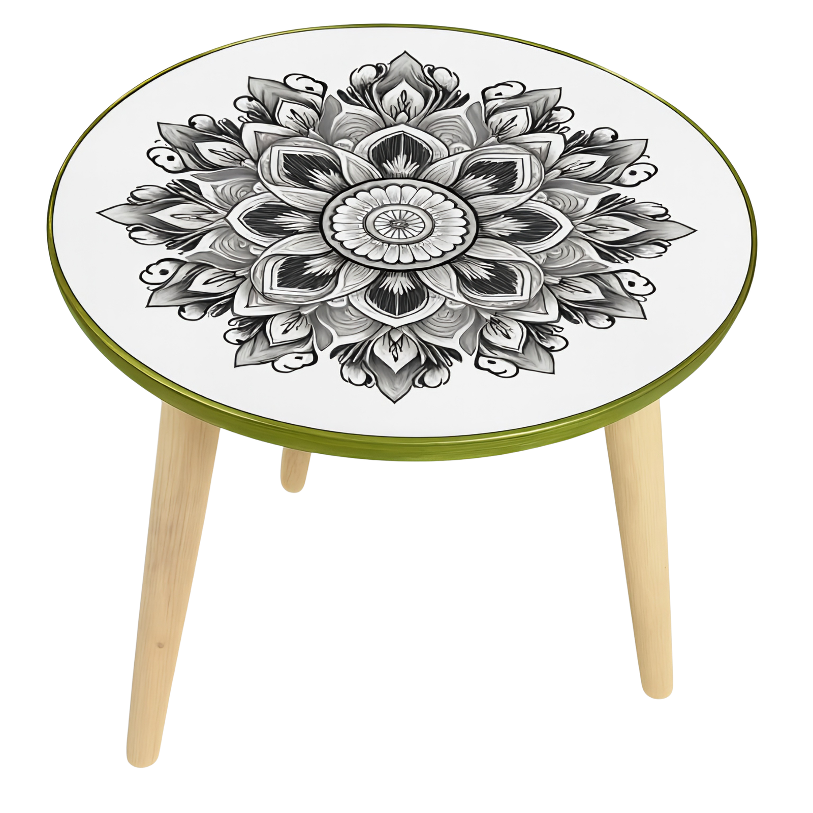 שולחן מנדלה קלאסי ומרשים בגווני שחור ולבן. דוגמת המנדלה האמנותית במרכזו משדרת ניקיון, איזון והרמוניה מושלמת בין ניגודים בעוד רגלי העץ הבהירות מוסיפות חמימות טבעית. השולחן מתאים לעיצוב מודרני, סקנדינבי או מונוכרומטי, והוא מושלם כשולחן צד, שולחן קפה או פריט נוי המעורר השראה והרמוניה בחלל.