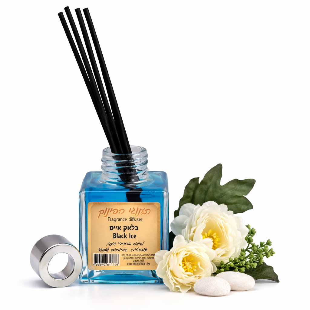 דיפיוזר יוקרתי בניחוח מרענן ומודרני של בלאק אייס – תערובת מסתורית של רעננות קרירה, תווי עצים עדינים וניחוח גברי־אלגנטי שמעניק תחושת ניקיון וסטייל.