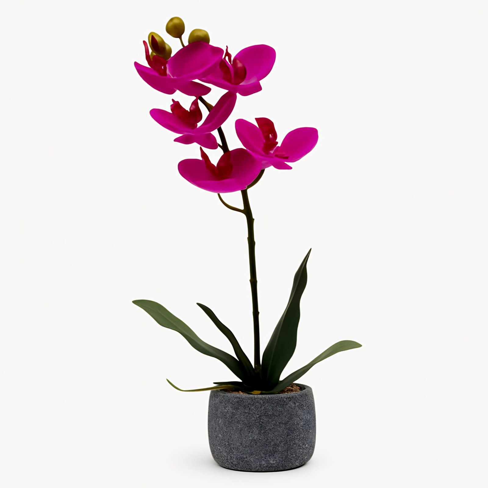 אורכידאה מלאכותית בגוון פוקסיה עז ומלא חיים, בעיצוב אלגנטי שמוסיף נגיעה צבעונית ומרעננת לכל חלל. הפריחה המרשימה משתלבת עם העציץ האפור ויוצרת מראה מאוזן בין מודרני לרומנטי. ללא צורך בהשקיה או תחזוקה – היופי נשמר לאורך זמן, בקלות וללא מאמץ. מתאים לעיצוב סלון, חדר שינה, משרד או פינת אוכל, ומכניס לחלל צבע, אלגנטיות ורוך.