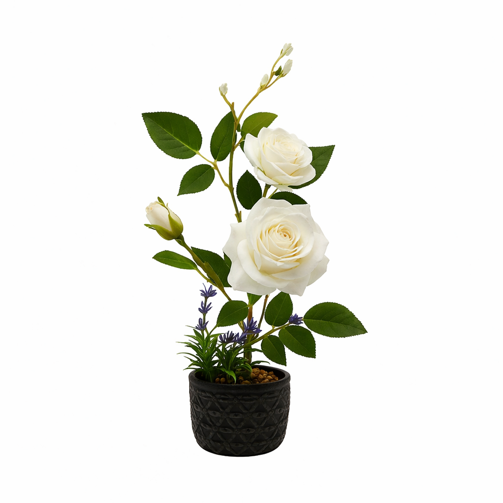 עציץ ורדים מלאכותיים בגוון לבן-טהור, המעוצב בקפידה ומעניק לחלל מראה נקי, אלגנטי ונצחי. העלים הירוקים מוסיפים נגיעת טבע מרעננת והעציץ השחור משלים את המראה הקלאסי במינון מושלם של רוך ויוקרה. ללא צורך בהשקיה או תחזוקה – היופי נשמר תמיד, ללא השקעה או טיפול. מושלם לעיצוב סלון, חדר שינה, משרד או מבואת כניסה, ומשרה בכל מקום אווירה של שלווה, ניקיון ואור טבעי.