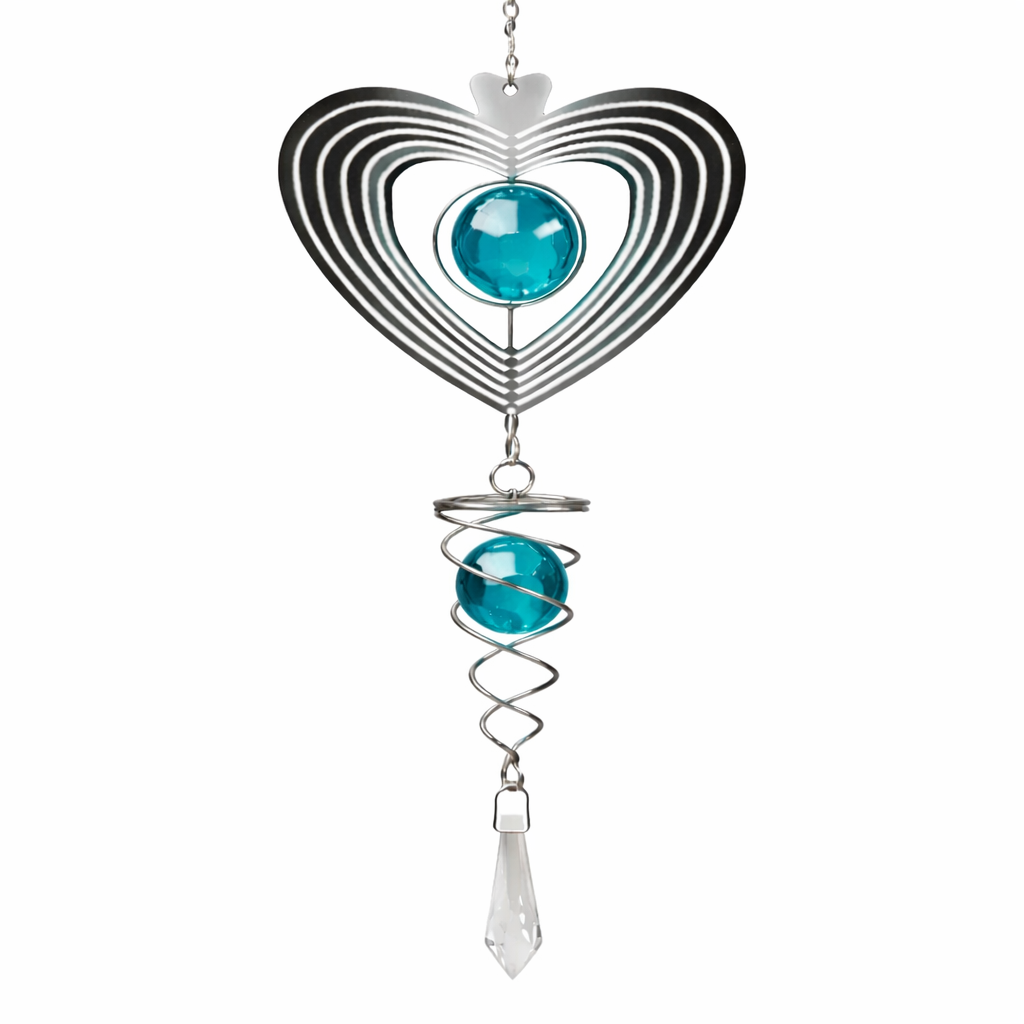מובייל תלייה כסוף עם קריסטלים בצבע טורקיז, המשדרים רעננות, זרימה ואיזון טבעי. התנועה הספירלית יוצרת מוקד דינמי ומעורר, תוך שמירה על איזון והרמוניה עיצובית. מתאים לתלייה בבית, במרפסת מקורה, ליד חלון או בפינת מדיטציה, ומשלב עיצוב אסתטי עם משמעות רוחנית.