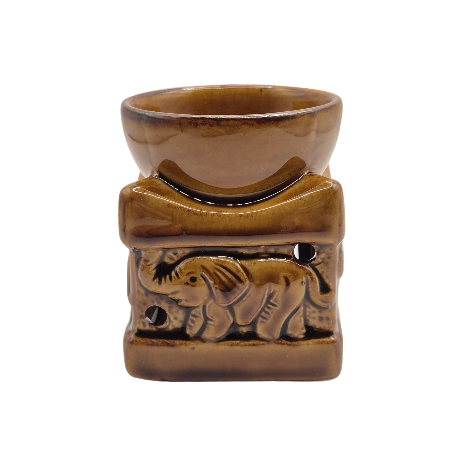 מבער שמנים ארומטי מקרמיקה בגוון חום, בעבודת יד ובגימור חלק ונעים. קערה עליונה להנחת שמן ארומה או קוביית שעווה, ופתח אחורי לנר חימום. הפיל נחשב בתרבויות רבות לסמל של מזל טוב, חוכמה, יציבות ושפע, ולכן מבער זה מתאים במיוחד ליצירת אווירה רגועה, נעימה ומבורכת בבית. מושלם לפינת מדיטציה, סלון, חדר שינה או כמתנה עם משמעות.