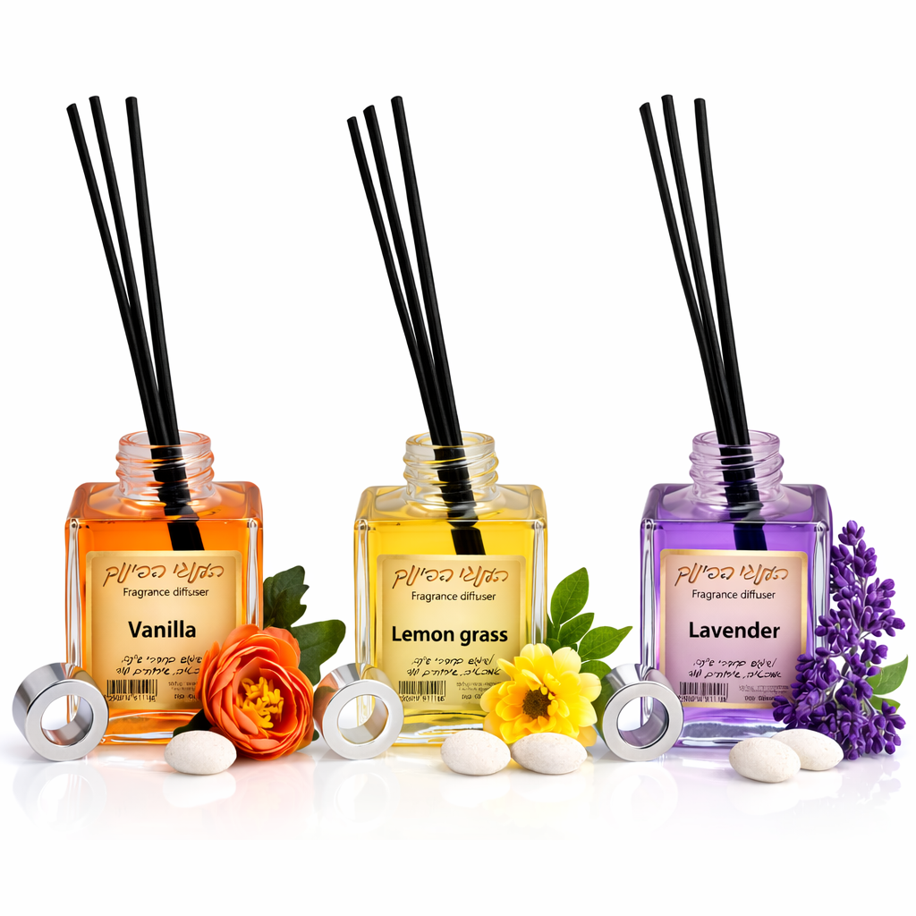 מארז מפיצי ריח מעוצבים לבית הכולל שלושה ניחוחות אהובים מסדרת הבישום לבית: וניל חמים ומרגיע, למון גראס רענן ומעורר ולבנדר עדין ומאזן. כל מפיץ ריח מגיע בבקבוק זכוכית מעוצב עם מקלות הפצה המאפשרים פיזור הדרגתי של הניחוח בחלל. שילוב הניחוחות יוצר אווירה נעימה, רגועה ומזמינה בבית, בקליניקה, במשרד או בחדר השינה. המארז מושלם גם כמתנה מעוצבת לחנוכת בית, חג או לאוהבי ניחוחות לבית.