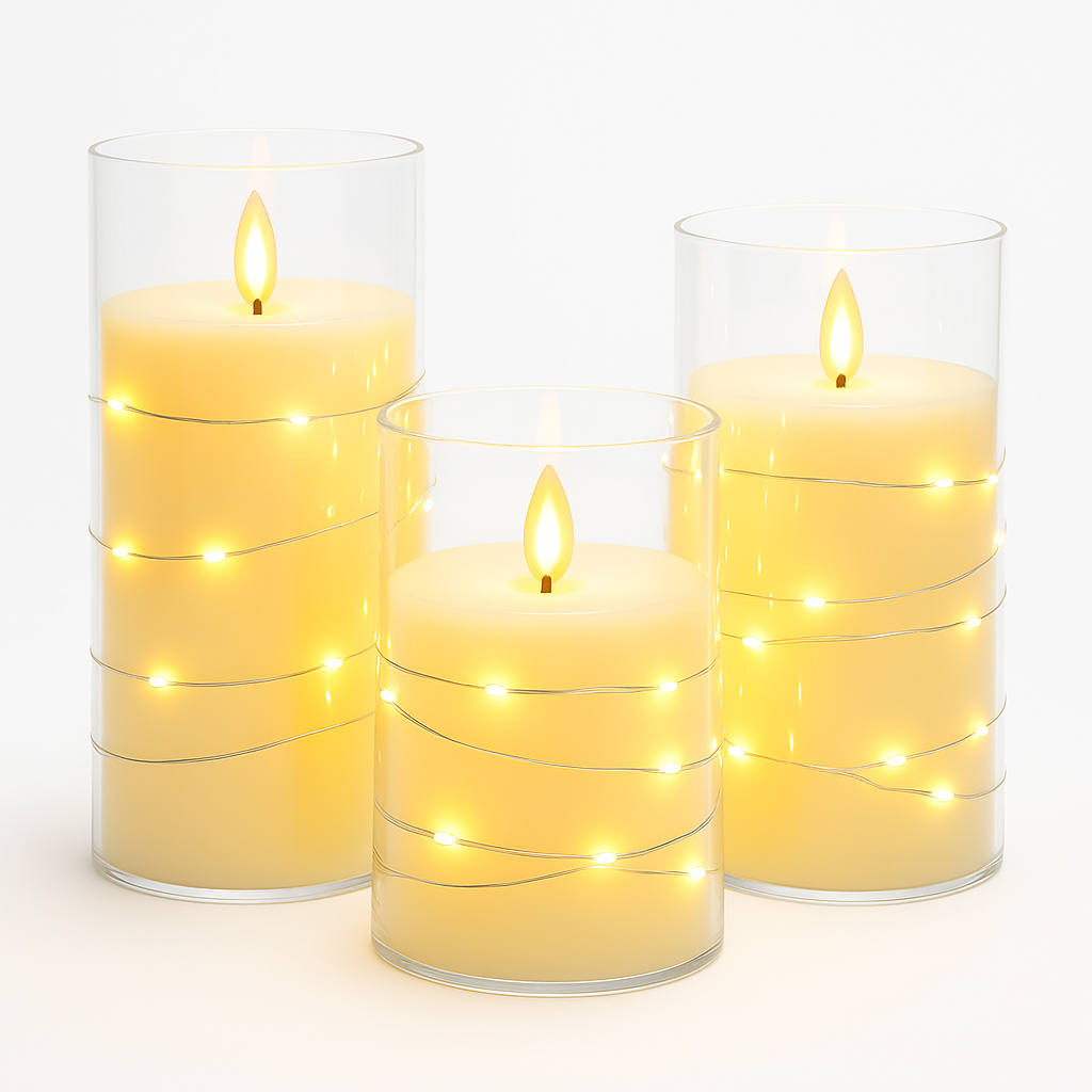 סט נרות לד אלגנטי ומעוצב בשלושה גדלים שונים, עשויים מעטפת שקופה עם אור חמים ומרגיע המדמה להבה אמיתית. העיצוב הדקורטיבי הקלאסי מעניק תחושת יוקרה, רוגע ואור רך לכל חלל – סלון, חדר שינה, שולחן אוכל או אירועים מיוחדים. פועלים על סוללה, ללא חום, עשן או דאגה – רק שלווה ונעימות מושלמת בעיצוב נקי ומודרני.