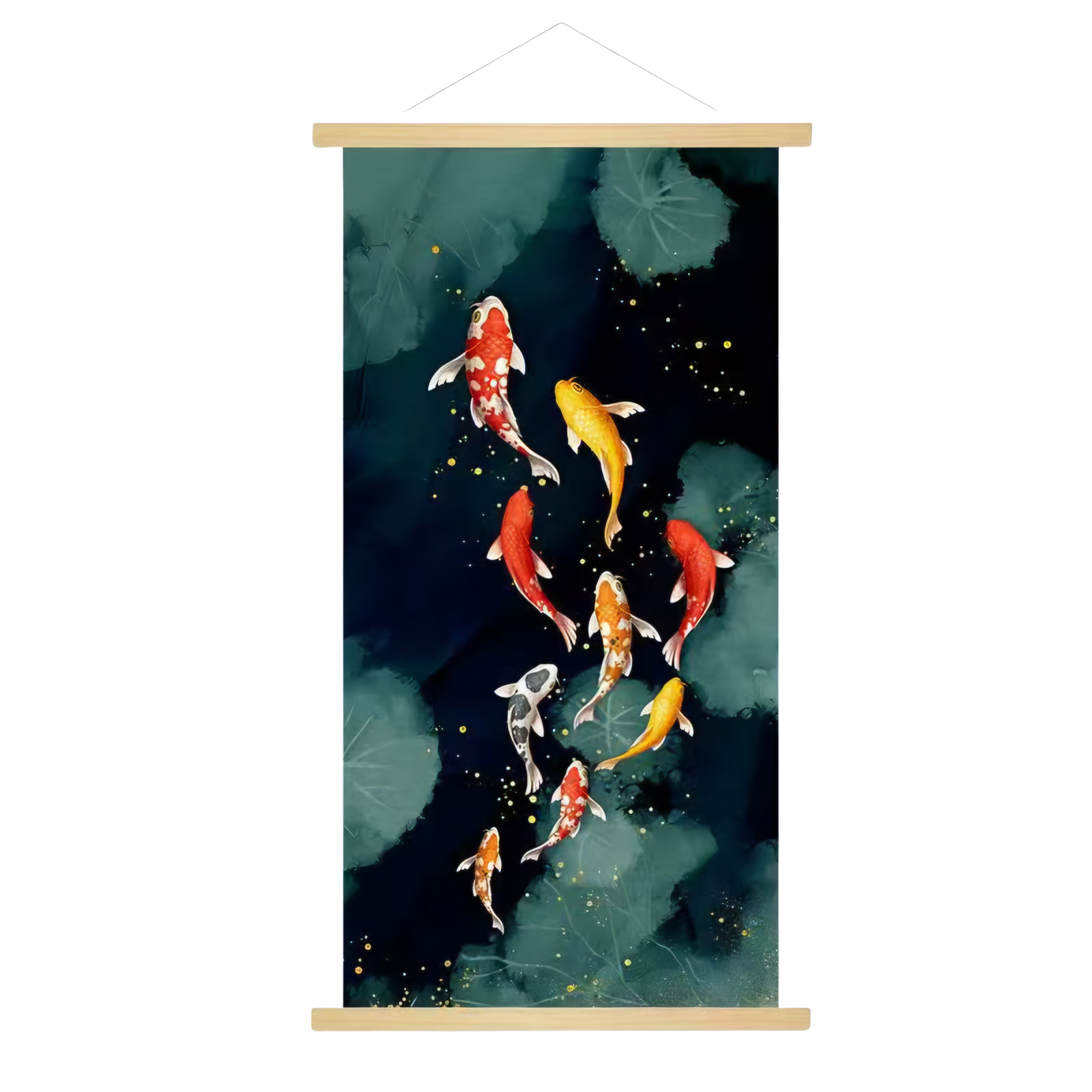 גלילת קיר מעוצבת עם דגי קוי בגוונים חמים ובולטים על רקע כהה ועמוק, היוצרת מראה דרמטי, אלגנטי ומלא נוכחות. הדגים שוחים בתנועה הרמונית שמכניסה תחושת זרימה, שפע ושלווה לחלל. מתאימה לסלון, חדר שינה, פינת מדיטציה, קליניקה, משרד או חלל טיפולי, ומשתלבת נהדר בעיצוב מודרני, יפני, בוהו או אוריינטלי. פריט עיצובי שמוסיף עומק, משמעות ואווירה רגועה לבית.