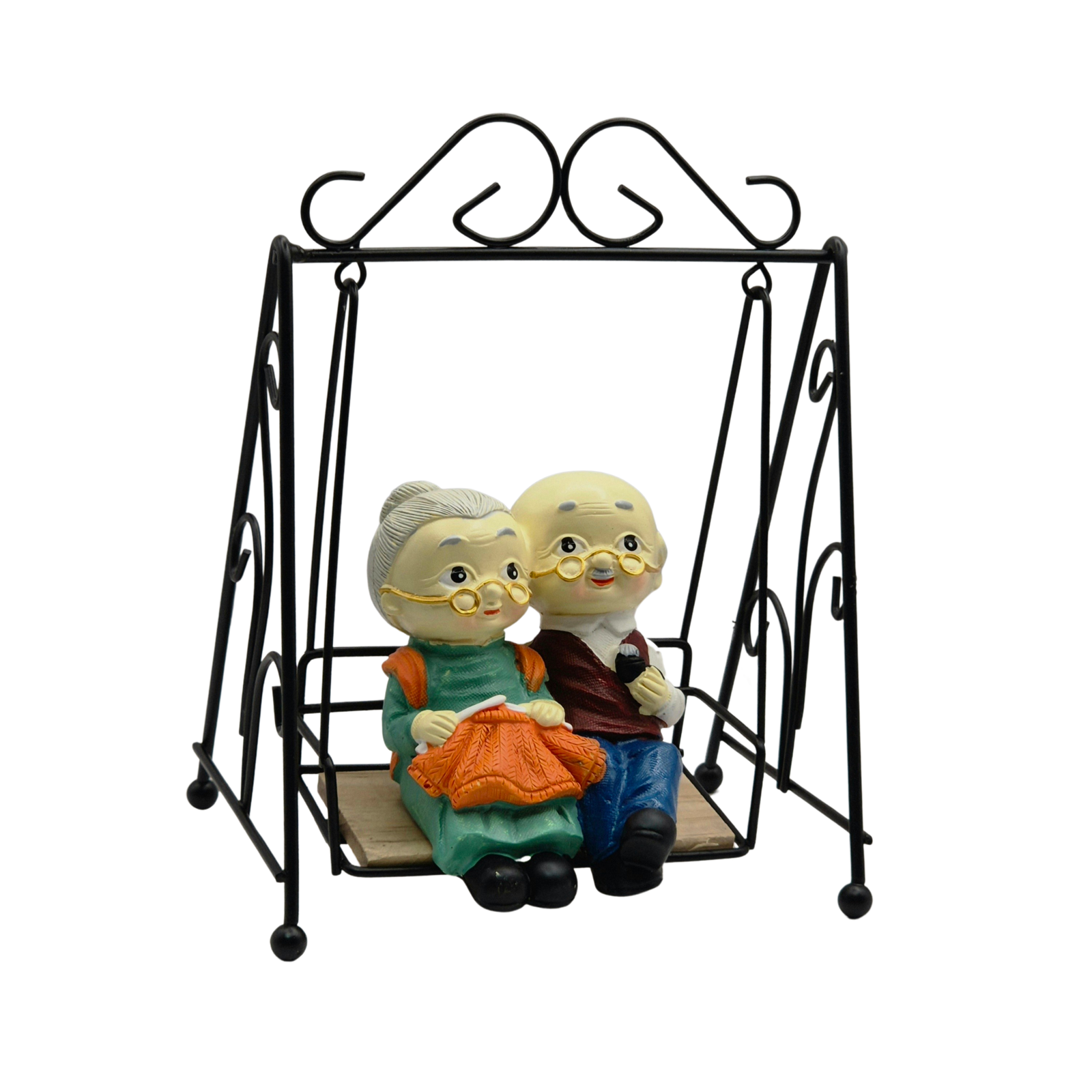 פסלון מקסים של סבא וסבתא יושבים יחד על נדנדה – היא סורגת והוא מביט בה באהבה. רגע קטן שממיס את הלב ומוסיף חמימות, רוך וחיוך עדין לחלל הבית.
