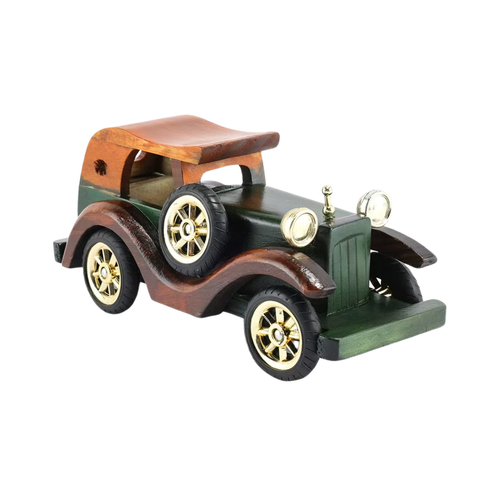 מכונית רטרו דקורטיבית מעץ בגוון ירוק כהה עם שילוב חום חמים, בעיצוב נוסטלגי עם קווים מעוגלים ונגיעות וינטג’ עדינות. שילוב העץ הטבעי עם הגוון הירוק העמוק והחום העשיר יוצר פריט עיצובי חמים ובעל אופי, המשתלב בקלות בסלון, על שולחן סלון, מדף, קונסולה, חדר עבודה או חדר ילדים מעוצב. מתאימה כפריט נוי עצמאי, כחלק מקומפוזיציית עיצוב או כמתנה מקורית עם אופי.