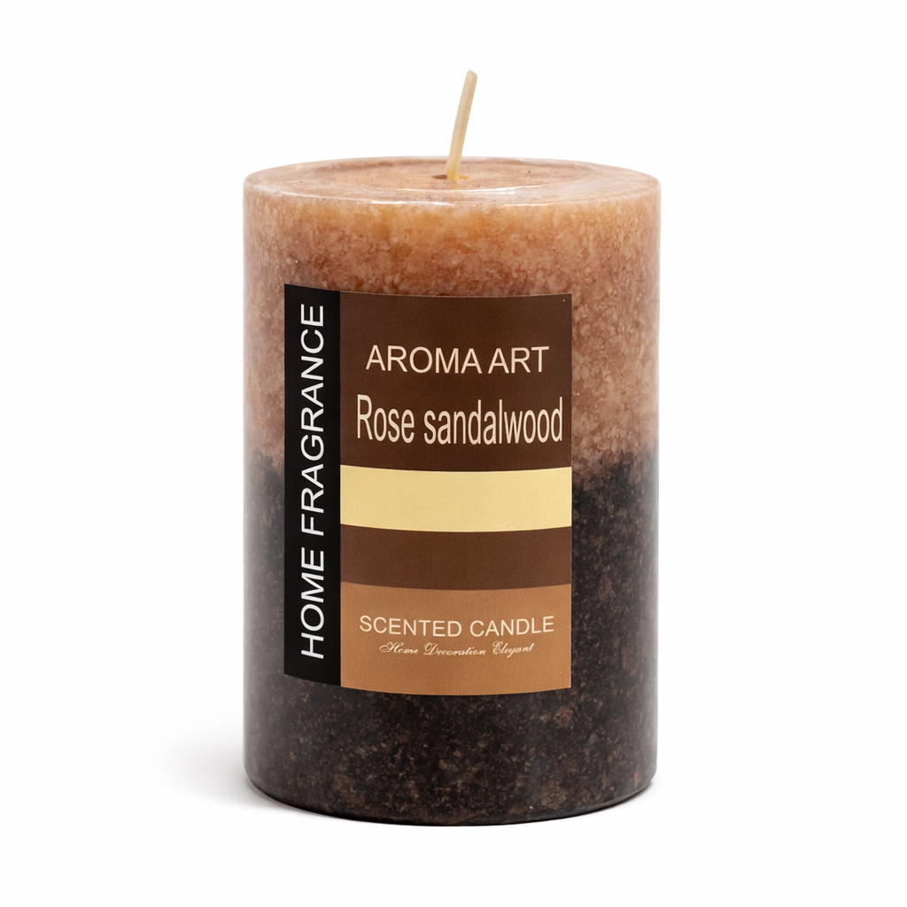 נר ארומה מעוצב בגודל קומפקטי בניחוח רוז סנדלווד חמים ועמוק, המשלב מתיקות פרחונית עם עומק עצי ומרגיע. הנר יוצר אווירה אינטימית, שקטה ואלגנטית, ומתאים לבישום עדין של חללים קטנים, לפינת רוגע, לשולחן צד, לחדר שינה או לחלל טיפולי. העיצוב המדורג בגווני חום טבעיים וכהים מעניק לנר מראה עשיר ובוגר, המשתלב היטב בסגנון קלאסי, טבעי או בוהו, ומהווה פריט דקורטיבי ומתנה מעוצבת עם נוכחות שקטה.