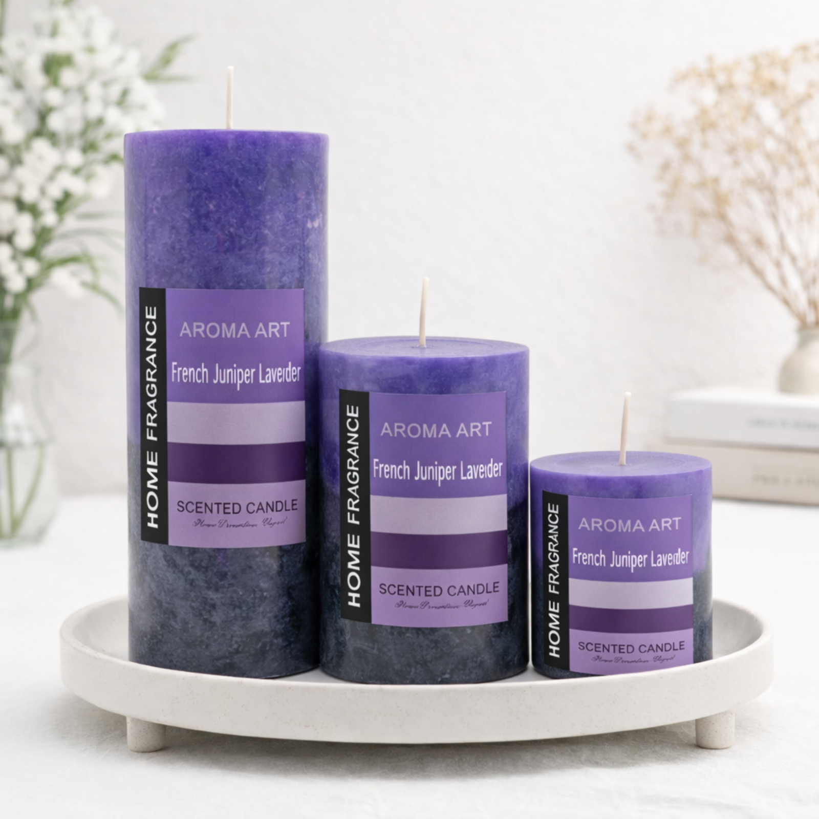 סט אלגנטי של שלושה נרות ריחניים בניחוח French Juniper Lavender – שילוב מעודן של לבנדר רך עם נגיעות ירוקות-ארומטיות היוצרות אווירה רגועה, נקייה ומאוזנת. הנרות מעוצבים במראה טבעי-מודרני בגווני סגול עמוק המשתלבים בהרמוניה בכל חלל: סלון, חדר שינה, קליניקה, פינת מדיטציה או אירוח. ניתן להעמיד יחד כקומפוזיציה דקורטיבית מרשימה או לפזר בחלל להשלמת חוויית הריח והעיצוב.
