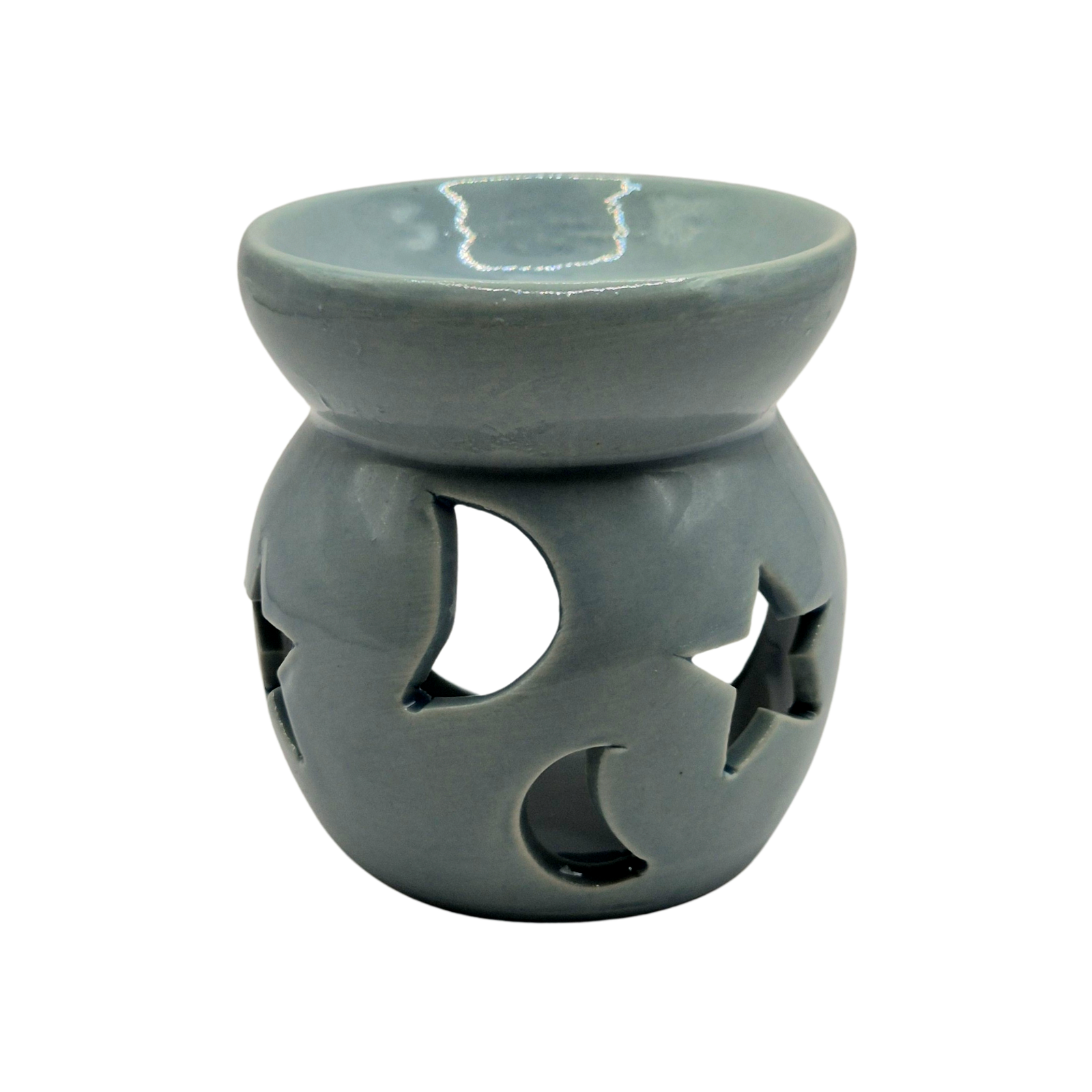 מבער שמנים קרמי בעיצוב ירח וכוכבים, בגוון תכלת רך ומרגיע. הפתחים בדוגמת ירח וכוכבים יוצרים משחק אור עדין ומפזרים תחושת שקט, חלום ואווירה לילית נעימה בחלל. מתאים לשימוש עם שמני ארומה ושעוות ריח, ליצירת אווירה רגועה ומזמינה בבית, בחדר שינה, בקליניקה או בפינת מדיטציה.
