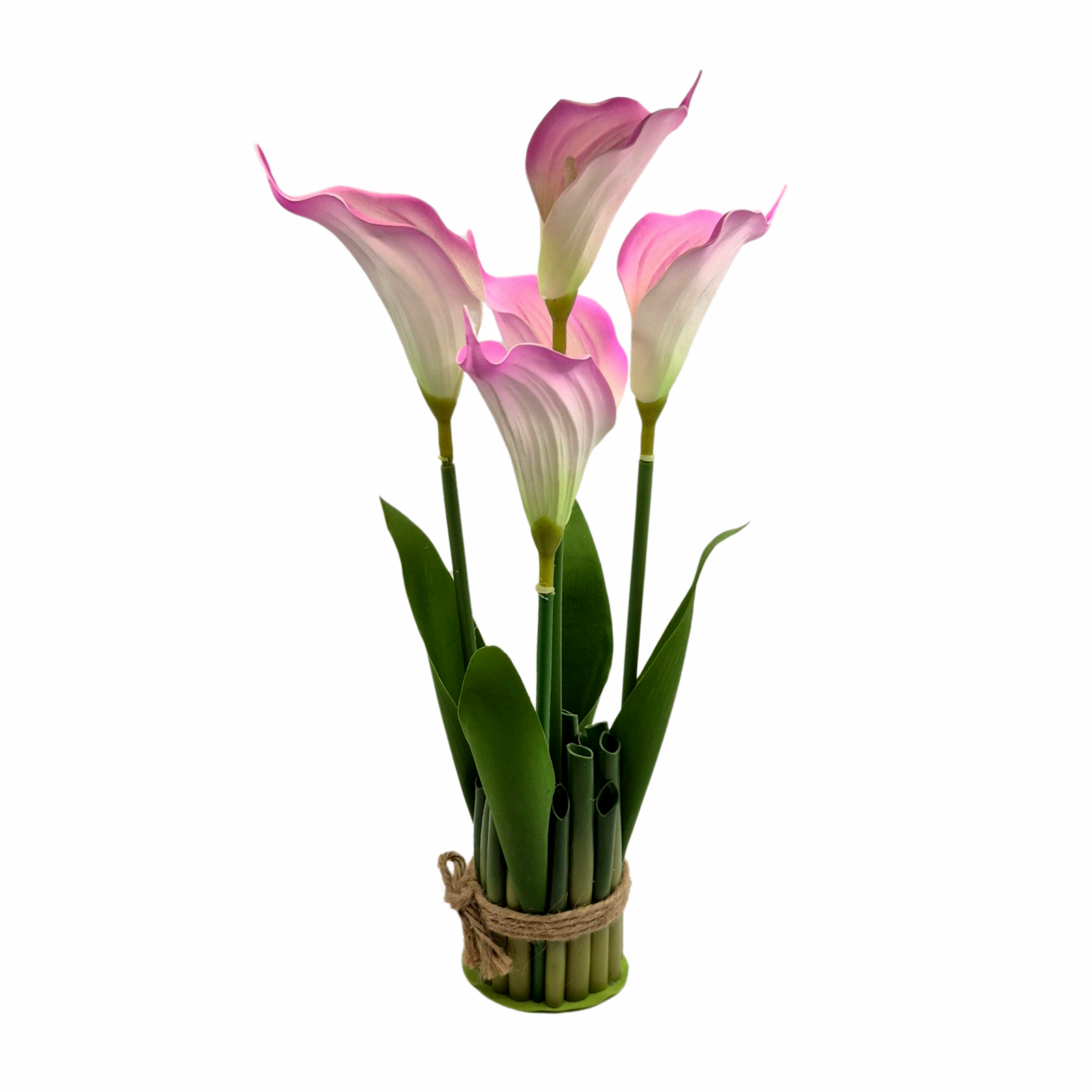 זר קאלות מלאכותיות בצבע ורוד ובעיצוב נקי ואלגנטי, המשלב קווים רכים עם נוכחות שקטה ומעודנת. הקאלות, המזוהות עם רוך, הרמוניה ואלגנטיות על־זמנית, יוצרות מראה רגשי ועדין המתאים לעיצוב הבית, שולחן אירוח, חלל טיפולי או כמתנה מרגשת לאירועים מיוחדים. הזר משתלב בקלות במגוון סגנונות — מודרני, קלאסי, מינימליסטי ובוהו. ללא צורך בהשקיה, תחזוקה או טיפול לאורך זמן.
