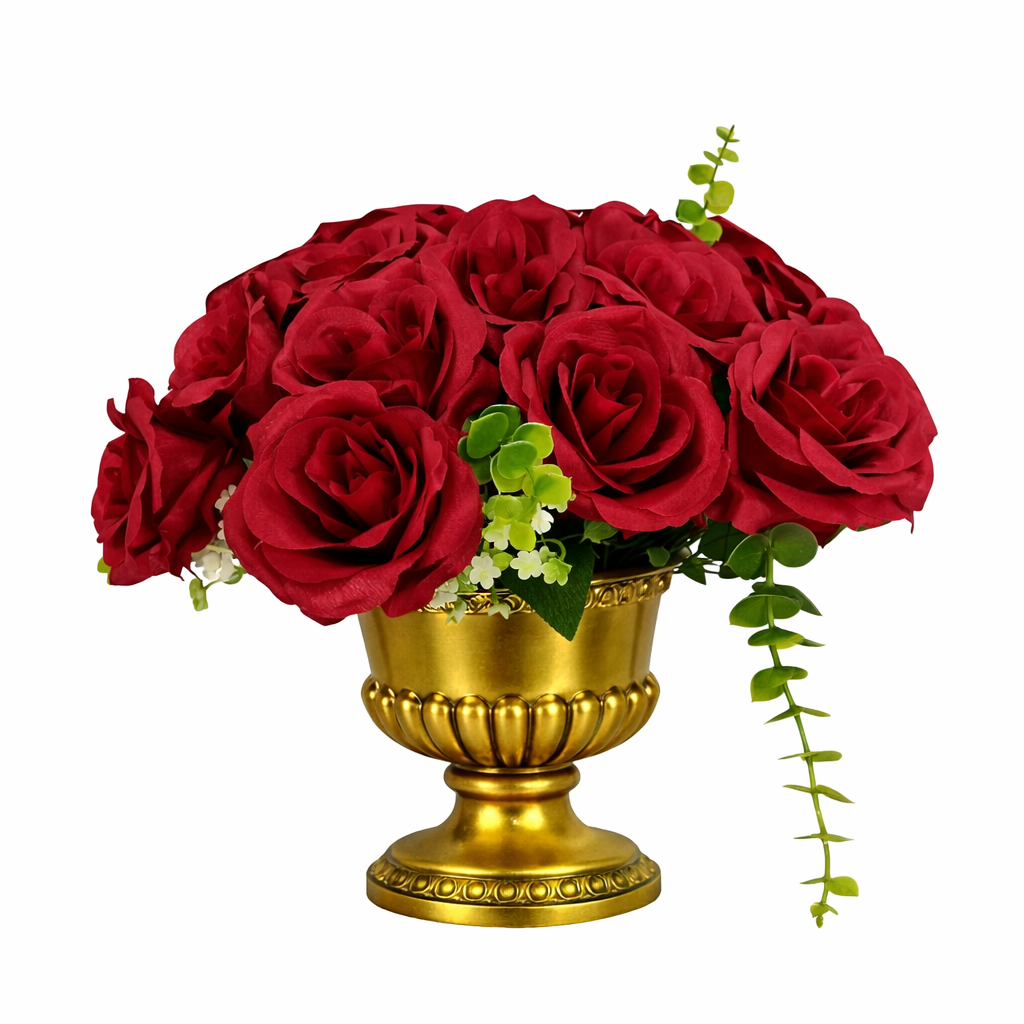 זר ורדים מלאכותיים בגוון ארגמן עמוק ועשיר, בעיצוב עגול, צפוף ומרשים המדמה זר ורדים טבעי במראה יוקרתי ורומנטי. הזר משלב עלי ורדים קטיפתיים עם נגיעות ירק עדין, ויוצר מראה חגיגי שמתאים לשולחן אירוח, מזנון, שידת כניסה, סלון, קליניקה או חלל מעוצב. הזר אינו דורש תחזוקה, השקיה או אור, ושומר על מראה רענן לאורך זמן.