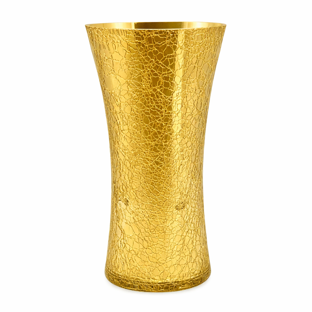 אגרטל זכוכית יוקרתי בגוון זהב מבריק עם דוגמת “קרקל” עדינה ומרקם ייחודי המשווה לו מראה עשיר וזוהר. עיצובו האלגנטי משלב בין יוקרה קלאסית לנגיעה מודרנית, ומתאים לסידורי פרחים חיים, מלאכותיים או יבשים וכפריט עיצוב עצמאי. האגרטל משדר יוקרה, אלגנטיות ונוכחות, ומעניק לכל שולחן, שידה או סלון מראה של עיצוב מוקפד ומואר.