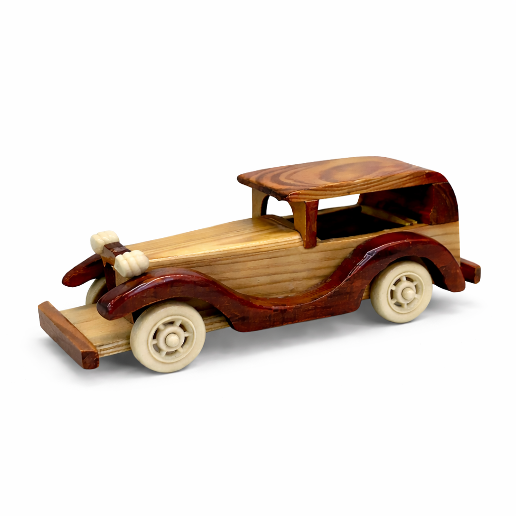 מכונית רטרו דקורטיבית מעץ בגוון טבעי חמים, בעיצוב קלאסי עם קווים רכים ומראה נוסטלגי. שילוב גווני העץ הבהירים והכהים יוצר פריט עיצובי רגוע ובעל אופי טבעי, המשתלב בקלות בסלון, על שולחן סלון, מדף, קונסולה, חדר עבודה או חדר ילדים מעוצב. מתאימה כפריט נוי עצמאי, כחלק מקומפוזיציית עיצוב או כמתנה מקורית עם נוכחות שקטה וטבעית.