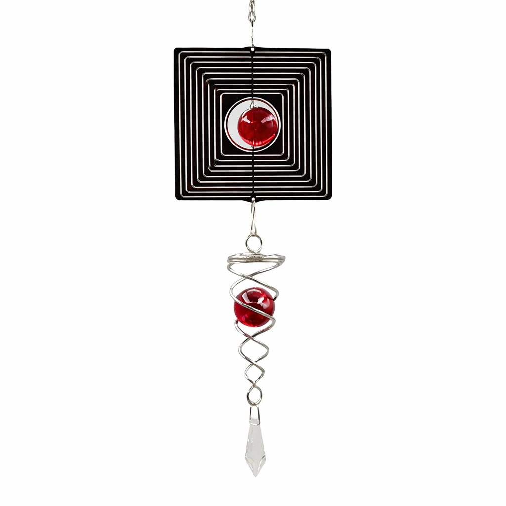 מובייל תלייה דקורטיבי בעיצוב גאומטרי מוקפד, עשוי מתכת בגימור כסוף ומשלב אלמנט צבע אדום עמוק עם פריט שקוף בקצה. המבנה המדורג והקווים הנקיים יוצרים תחושת ריחוף, איזון ותנועה שקטה בחלל, לצד משחק עדין של אור והשתקפויות. מתאים לתלייה בחלון, בסלון, בחדר שינה, בקליניקה או בפינת מדיטציה, ומוסיף נוכחות אלגנטית, דרמטית ומודרנית לכל חלל.