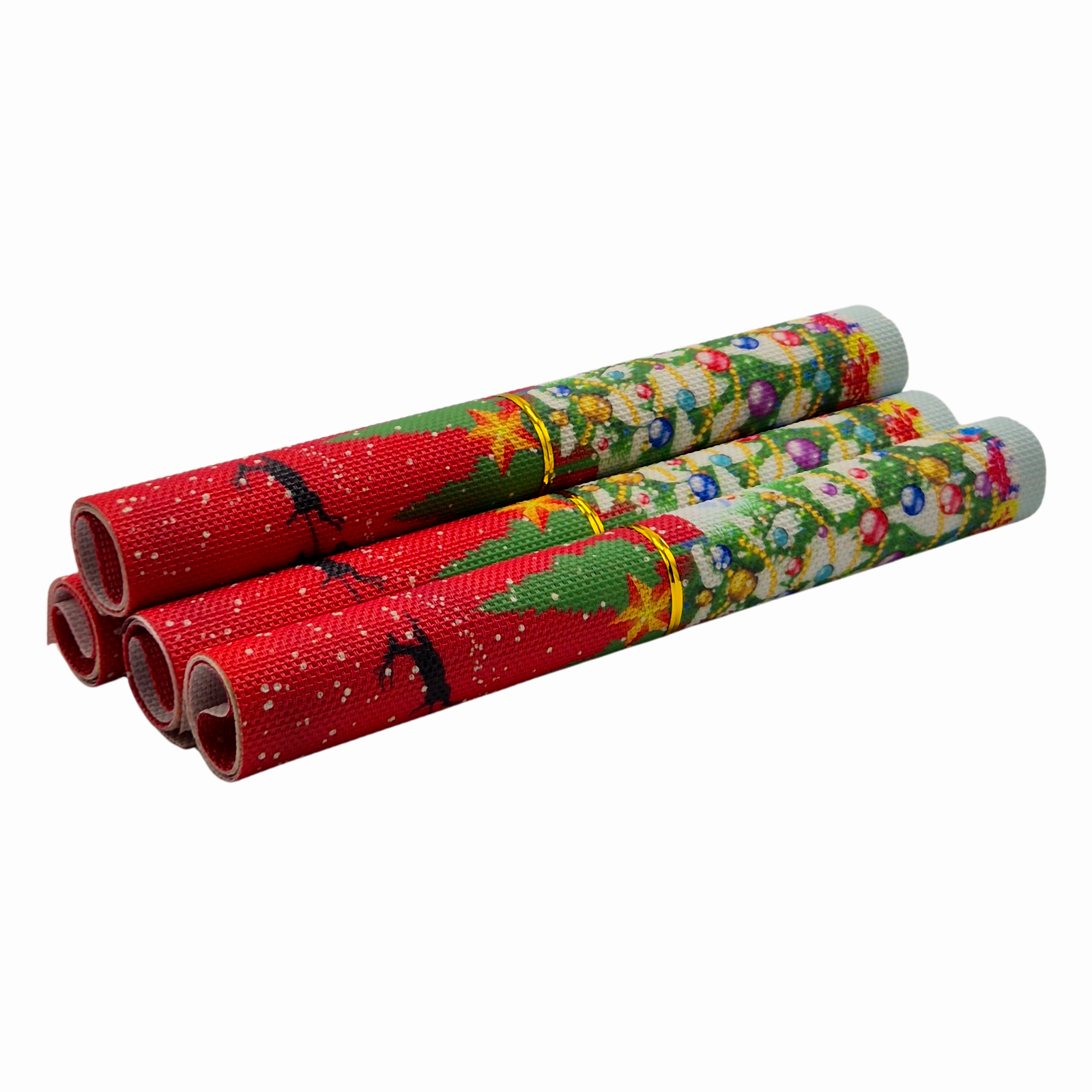סט פלייסמטים בעיצוב חגיגי עם רקע אדום וקישוטים צבעוניים בסגנון חג המולד. מוסיפים לשולחן האוכל או שולחן האירוח נגיעה חמה, שמחה ומלאת צבע. מגנים על השולחן מפני לכלוך ושריטות, קלים לניקוי ומתאימים במיוחד לארוחות חג, מסיבות חורף או אירוח חגיגי באווירה קסומה.