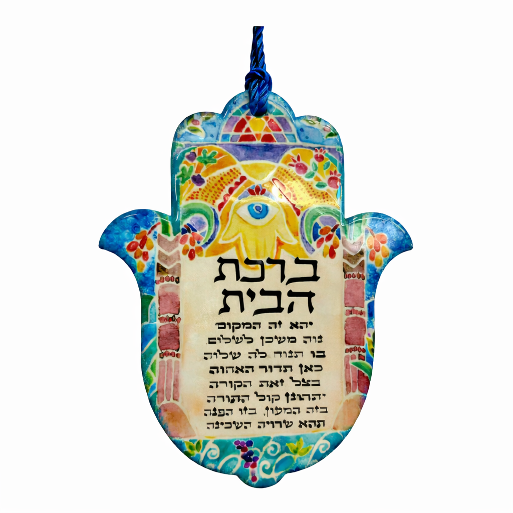 חמסה דקורטיבית לתלייה בעיצוב מזרחי עשיר, עם דוגמאות גאומטריות וצבעוניות וברכת הבית במרכז. החמסה מסמלת הגנה, שפע, מזל וברכה, ומשלבת מסורת עתיקה עם מראה עיצובי חם ומזמין. מתאימה לתלייה בכניסה לבית, בסלון, במסדרון או במשרד, וכן כמתנה מרגשת לחנוכת בית, חתונה או מעבר דירה. העיטורים המזרחיים והצבעים החיים מעניקים לה נוכחות בולטת ואווירה רוחנית־דקורטיבית.