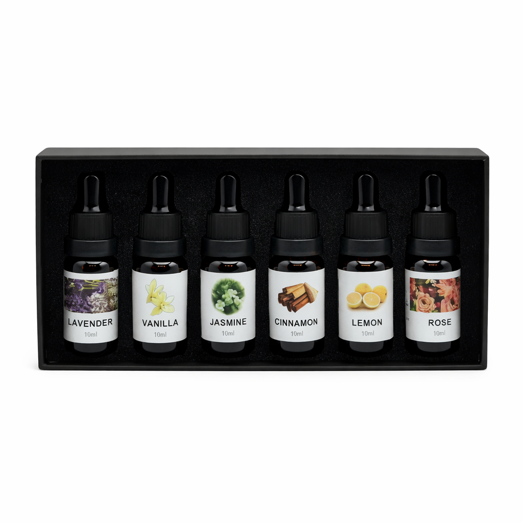 ערכה מושלמת הכוללת 6 שמנים ארומטיים בקבוקוני טפטפת בריחות קלאסיים ואהובים: לבנדר נעים ומרגיע, וניל מתוק וחמים, יסמין פרחוני ועדין, קינמון עוטף, לימון רענן וורד רומנטי. השמנים מתאימים לשימוש במבערים קרמיים, מפיצי ריח, דיפיוזרים חשמליים או אמבט מפנק. מושלם כמתנה מקורית או כפינוק יומיומי לעצמך.