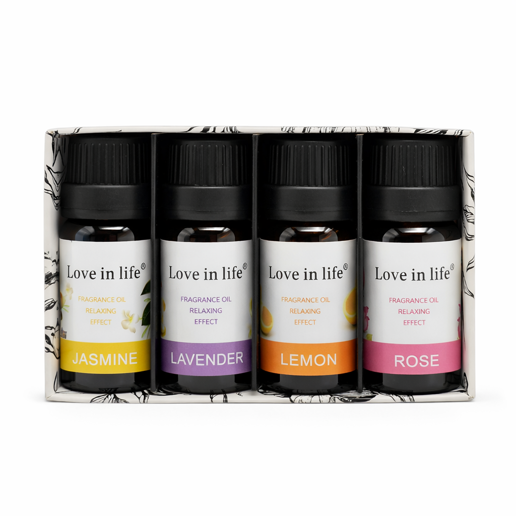 סט השמנים הארומטיים של “Love in life” כולל ארבעה ניחוחות אהובים במיוחד – יסמין פרחוני לאינטימיות רומנטית, לבנדר קלאסי להרפיה ורגיעה, לימון רענן לאנרגטיות ממריצה, וורד מתקתק לעדינות ואהבה.