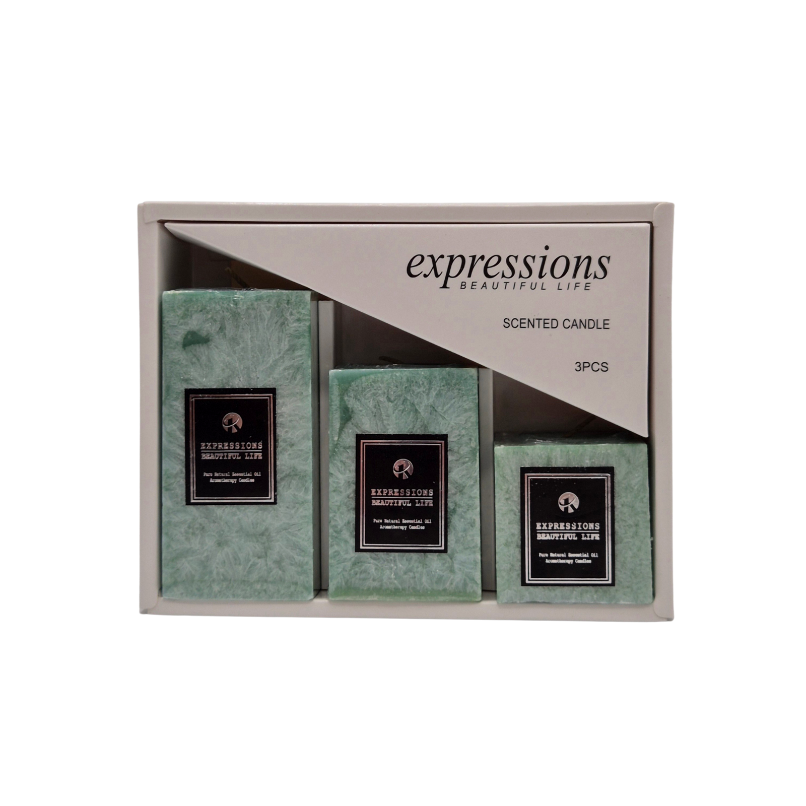 סט נרות דקורטיביים בצבע ירוק כהה, 3 גדלים שונים באריזת קופסה מהודרת מבית Expressions A Beautiful Life. חוויית ריח יוקרתית ומרגיעה, מוסיפה אווירה חמימה ונעימה לכל חלל, ומושלמת כמתנה או לשימוש אישי.