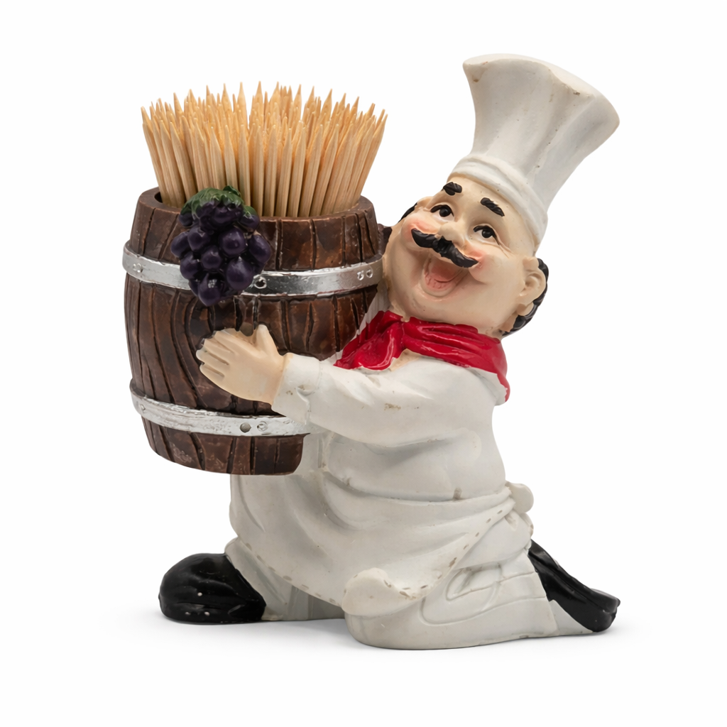 מחזיק קיסמים דקורטיבי ושימושי למטבח, לשולחן האוכל, לפינת האירוח או כמתנה חמודה לחובבי בישול ועיצוב מטבחים. מוצר המשלב פונקציונליות עם סגנון משובב ומוסיף אווירה עליזה של ביסטרו צרפתי עם קסם אירופאי וחיוך קטן. מתאים לקיסמים סטנדרטיים.