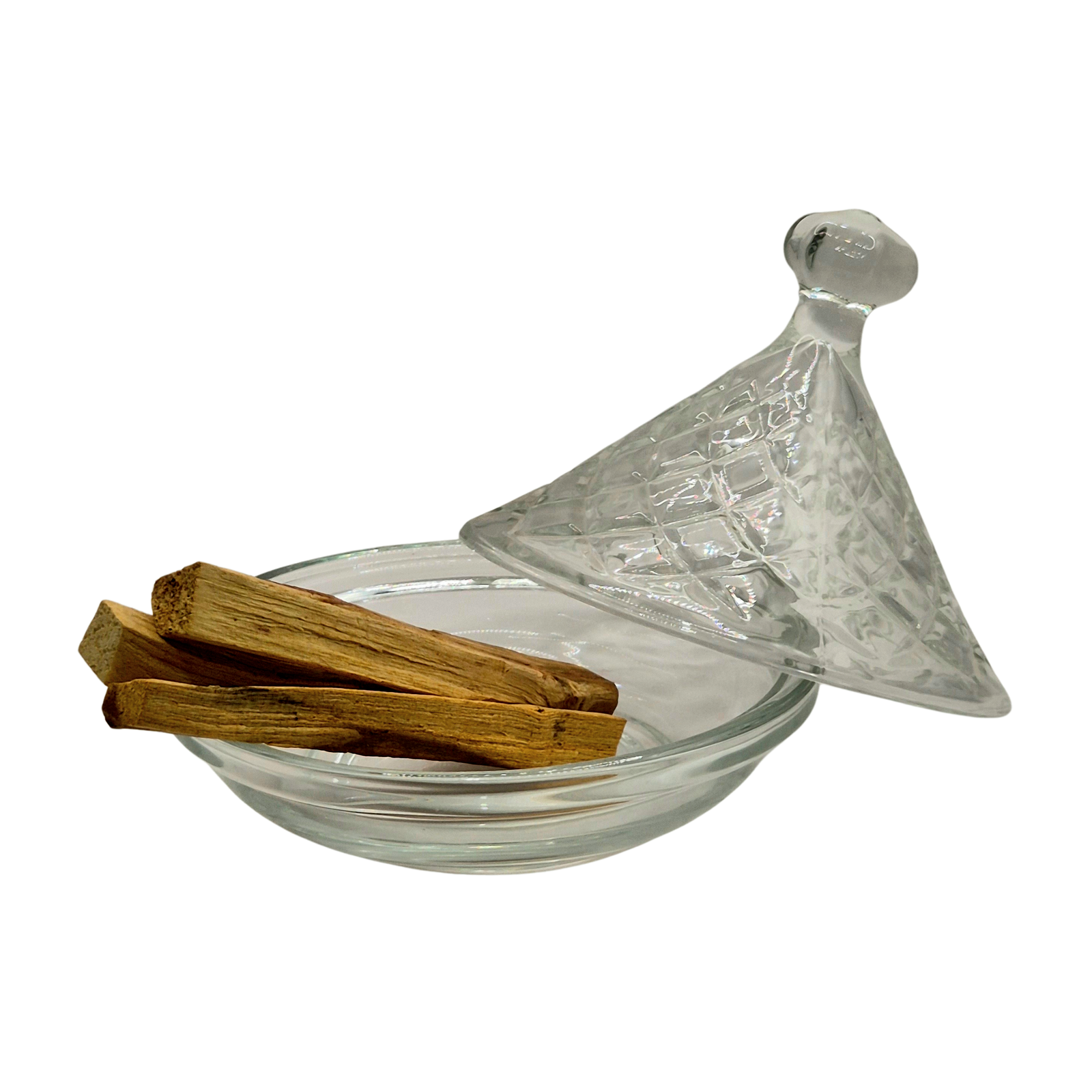 טאג'ין זכוכית אלגנטי עם מכסה חרוטי בעיצוב ייחודי, הכולל ערכה של 10 מקלות פאלו סנטו – עץ מקודש שמקורו באמריקה הלטינית, הידוע בניחוחו הארומטי ובסגולותיו לטיהור אנרגטי, רגיעה והעצמת תחושת החיבור הרוחני. אידיאלי לטיהור חללים, מדיטציה ויצירת אנרגיה חיובית בבית.
